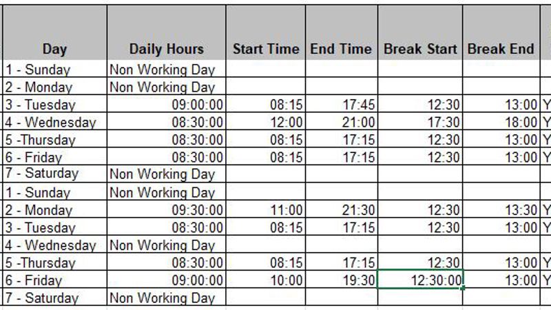 If you don't work the standard Monday to Friday 9-5 work pattern or you work shifts, your manager should make sure that this is saved in the system. See the "Viewing a work pattern" section above to find out how to do this. If your work pattern is not correct, see the "Amending a work pattern" section.