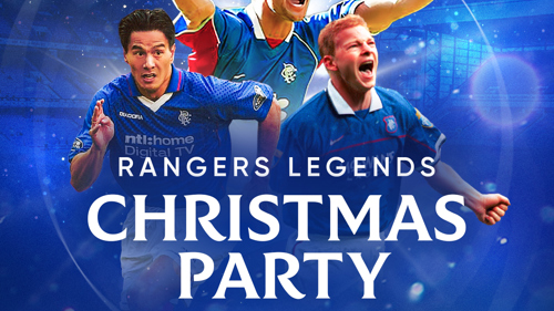 Dance the night away at the official Rangers Christmas night, featuring Ibrox icons Jorg Albertz, Michael Mols and Arthur Numan! Returning for its third year, the Rangers Legends Christmas Party will feature: A special welcome cocktail on arrival. Live on-stage interviews and photo opportunities with club legends. A festive two-course feast. Christmas party games. Live performances and a cracking Christmas DJ. Join Rangers Legends and special guests by securing your place now!