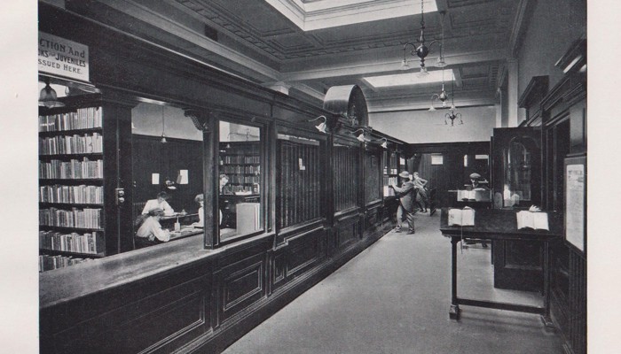 As with many libraries of the time, there were separate General (84 seated, 62 standing), Ladies’ (34), Girls’ (47) and Boys’ (93) Reading Rooms. 43 daily, and 45 weekly journals and papers were taken, and there were 9,748 books in the library.