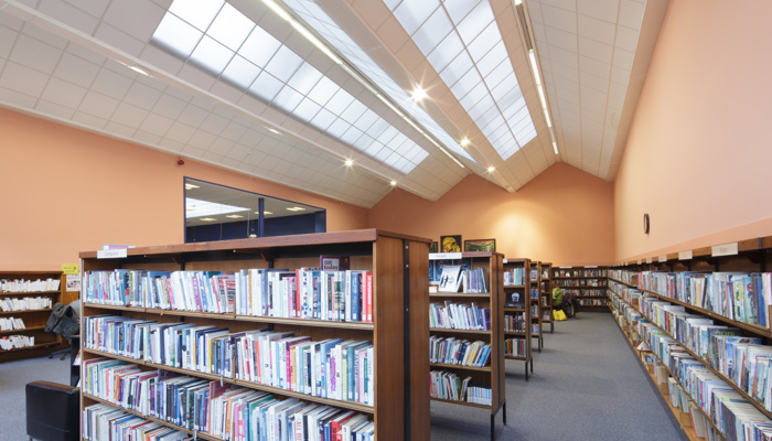 Baby changing facilities are available in the accessible toilet, with access from the main area of the library.
