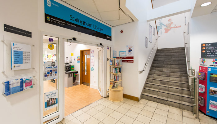 Springburn Library is in the same building as Glasgow Club Springburn, so you can complete a workout or head for a swim before relaxing with a good book.