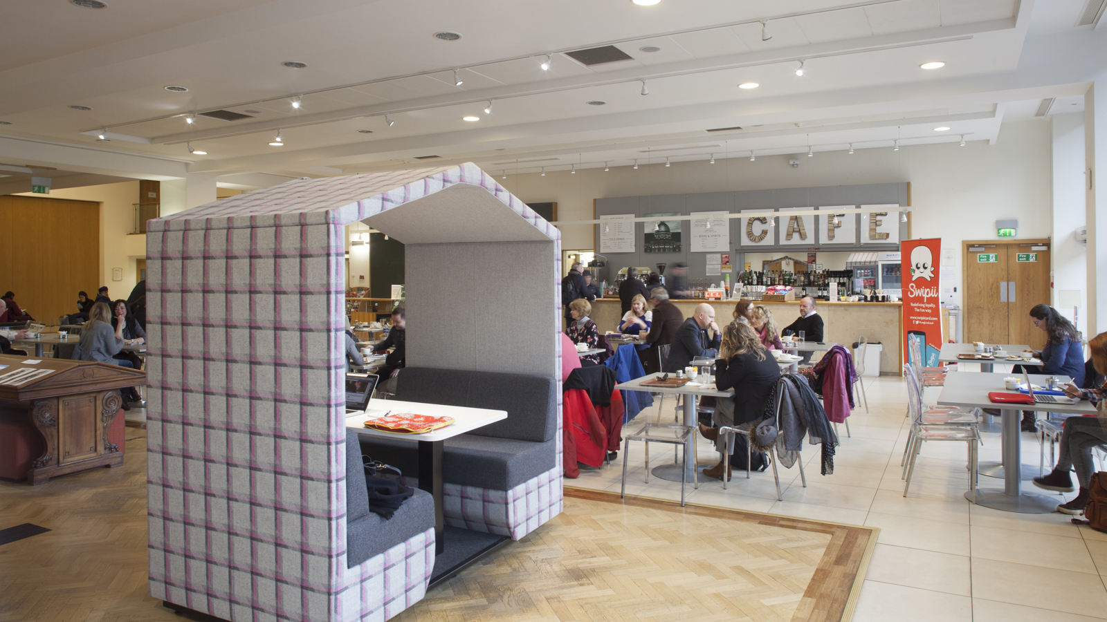 The Mitchell Café sits at the heart of an open space with free Wi-Fi, computers, study booths, displays, and exhibitions.