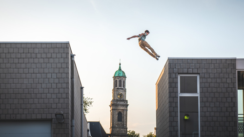 The two acrobats of Be Flat have prepared a unique tour of Glasgow for a select group of followers. The streets of the city, the facades of the buildings and the cobblestones below are transformed in to an urban circus piste. But Follow Me is not only a performance to be watched, it is a playful collective journey through public space. So turn off your mobile phones, tighten your shoelaces, and lets go!