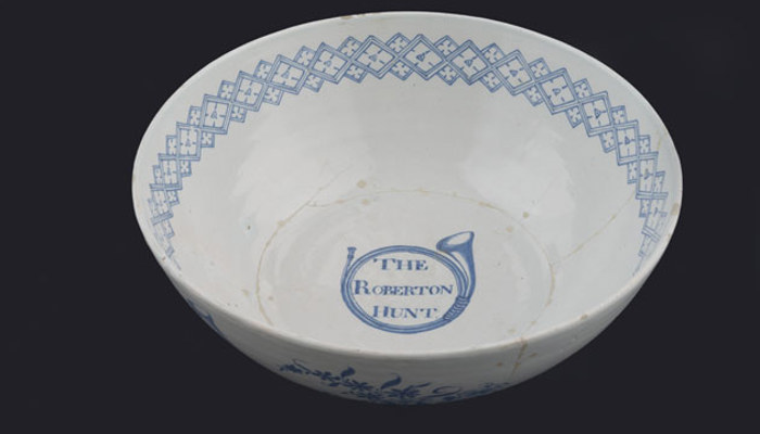 This ceramic bowl is known as ‘The Roberton Hunt’ bowl. It belonged to the members of an 18th-century fox hunt which took place twice a year in Renfrewshire and Lanarkshire.