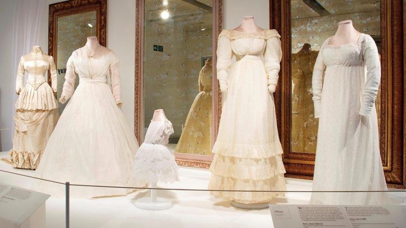 White dresses on display in 'A Century of Style: Costume and Colour 1800-1899'