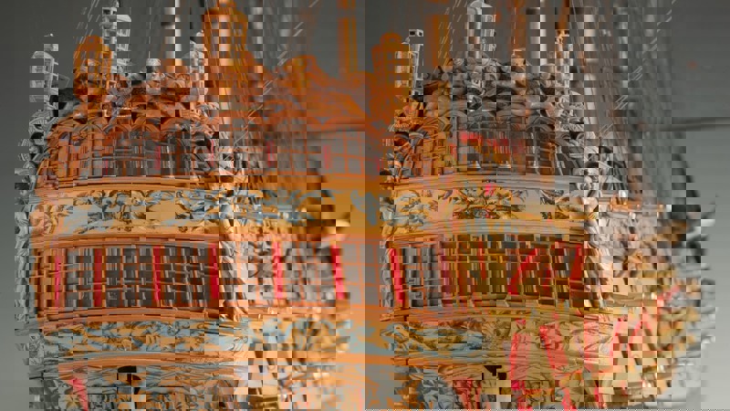One of the earliest ship models to enter the collection of Glasgow Museums was a fine model of HMS Oxford, made around 1727. It came from the collection of Robert Napier, known as the ‘father of Clyde shipbuilding’ and was presented shortly after his death in 1876 as an example of early naval ship design. However, beneath the beauty and intricacy of this model lies a darker history.