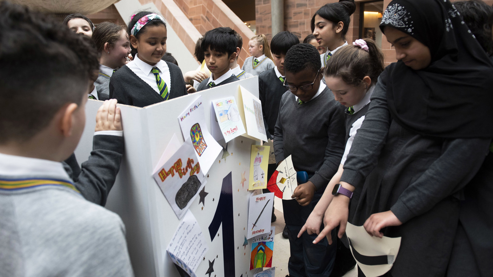 To help mark the occasion children from a local school, St Conval’s Primary, were at the museum preparing for a longer visit in April. They took time out to create sustainable cards to celebrate the first anniversary of the Burrell reopening and enjoy some cake."